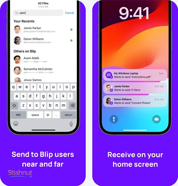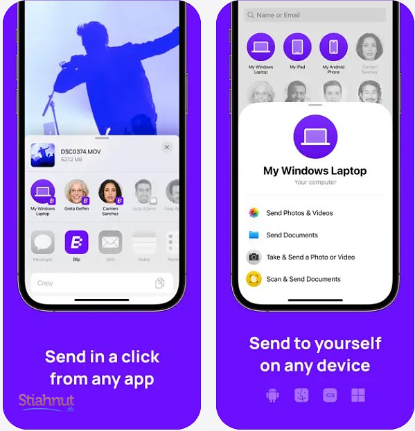 Blip je moderná aplikácia na bleskové zdieľanie súborov, fotografií a videí medzi vašimi zariadeniami aj s ostatnými ľuďmi – bez obmedzenia veľkosti a bez straty kvality. Funguje naprieč Macom, iOS, Windows aj Androidom a umožňuje odosielať dáta lokálne aj cez internet jediným kliknutím, priamo zo systémového zdieľania.